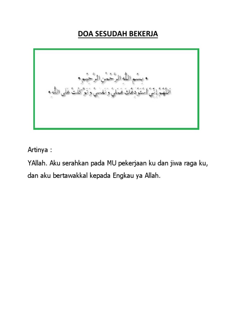 Doa Bekerja Bahasa Indonesia : Selain itu, insya allah umat islam akan diberikan perlindungan dan keselamatan.